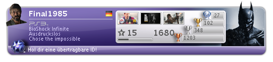 Heute bist du immer noch am Lernen, du hast mittlerweile schon PM2 und 3 MGS Teile durch, echt Respekt von mir, aber reicht das auch? Vertrauen tust du mir wohl immer noch nicht, oder warum muss jedes Spiel dass ich dir empfehle gratis zu holen sein damit dus testest? Vom Musik hören brauchen wir gar nicht erst anfangen... Ernsthaft, nur 946 gespielte Titel im September? Auch hier kannst du dir noch ein paar Scheiben von mir abschneiden. Aber heute sollst du dich nicht schlecht fühlen, heute ist ja dein Geburtstag! Alles Gute zum 23ten such dir mal einen Job du Penner, hier hat dir dein guter Freund GG eine kleine Compilation deiner absoluten Lieblingsspiele zusammengestellt: